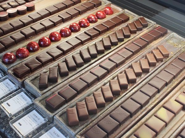 店内に一歩入ると、ショーケースにはボンボンショコラがずらり。種類の多さと、美しく整えられた佇まいに、自然と気持ちが高まります。