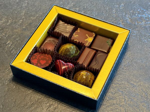 整然と並ぶショコラを前にすると、まず目で楽しみ、次に「どんな味だろう」と想像が膨らみます。選ぶ時間そのものも特別な体験です。