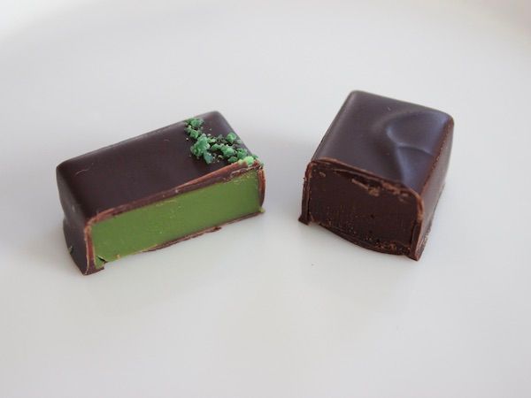「抹茶」はひと口目から抹茶の旨みがしっかりと感じられるショコラです。チョコレートの甘さの中に、抹茶ならではのほろ苦さとコクがあり、後味まで上品に続きます。