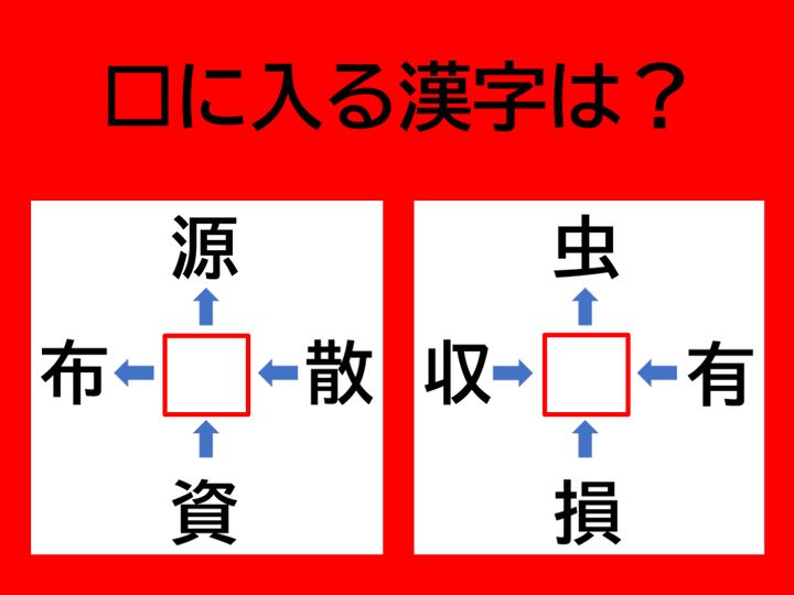 3. 【漢字パズル】脳トレに挑戦! □源、□布、資□、散□、に入る漢字は何?