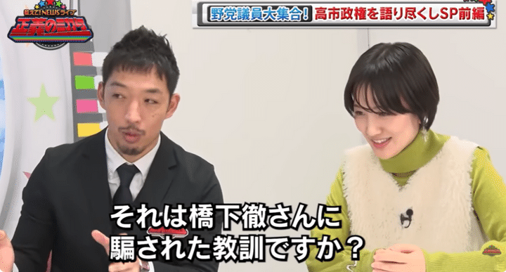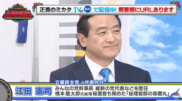 江田氏は維新・吉村代表にも思うところが多いようだ。立憲と同様に、企業団体献金を受けない方針を掲げる維新の活動を「僕も頼もしいと思ってたわけ。それが突然…」「ちょっと恥ずかしいと思うぐらいの案を出してきた」。