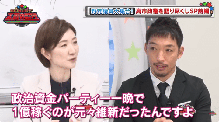 「政治資金パーティーで一夜にして1億円かせぐようなすごい政党があるわけですよね。それがまさに自民だったり維新だったりする」(大石氏)