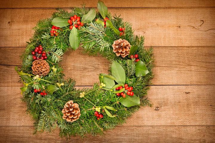 クリスマスに向けてつくった赤い実のリースは、クリスマス用の飾りをマツボックリなどに変えるだけで、これからの季節もまだ楽しめます。赤い実のボリュームをグッとふやして、ゴージャスで明るい印象にするのもよいでしょう。素材を束ねるだけのスワッグも飾る場所を選ばないので、同じように扱えます。