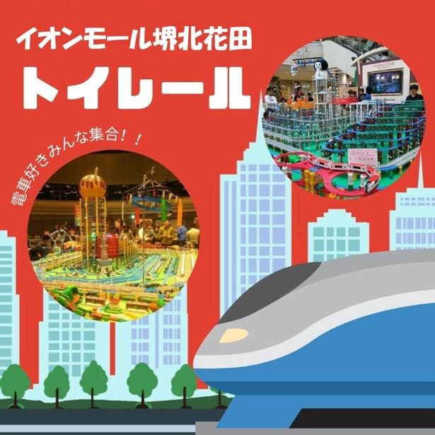 亀鈴(きれい)トイレールクラブこまちが主催する、電車のおもちゃの運転会イベント。精巧に作り込まれた迫力満点のトイレールが、イオンモール堺北花田に設置される。持ち込んだ電車のおもちゃを壮大なスケールのレール上で自由に走らせて楽しめる。