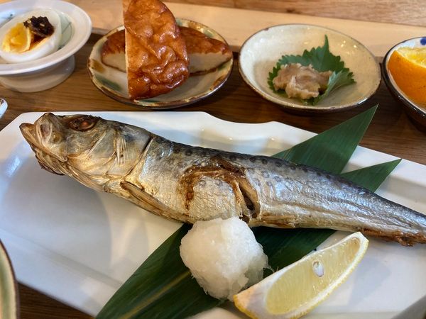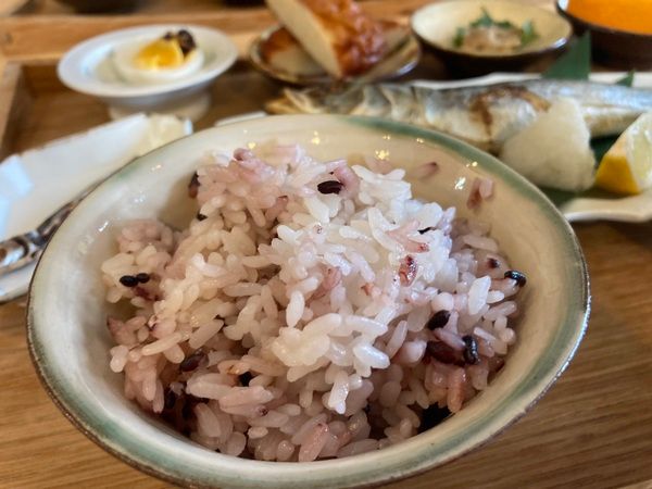 子持ちのイワシは味がギュッと詰まってとても美味しく、小皿もたくさんあって朝からとても贅沢な気分にさせてくれます。