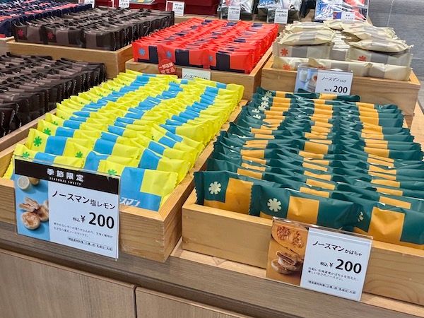 店内を見渡すと、なんと半分以上のアイテムが名物ノースマン。定番からの季節の味わいまでバリエーションの豊富さに驚きます。カラフルなパッケージに包まれ、見ているだけでうきうきします。