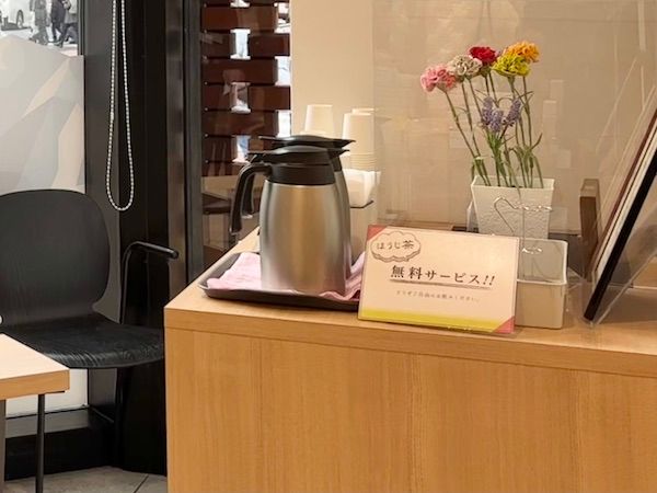 入り口そばに小さなイートイン席があり、ほうじ茶を無料でいただけるのだそう!なんてスペシャルなおもてなしなのでしょうか。