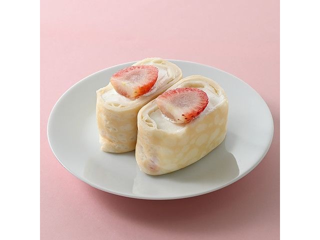 もちっと食感のクレープ生地にふわふわのミルクムースを入れて、いちごをトッピングしました。