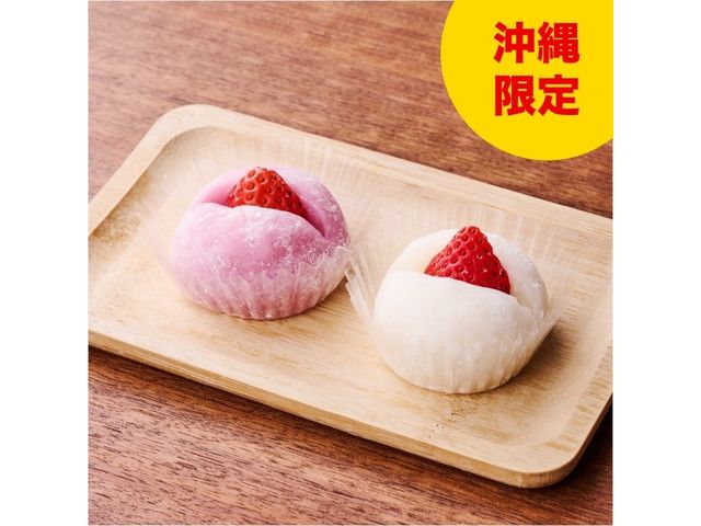 ミルククリームを包んだ大福(ピンク色)と、バニラクリームを包んだ大福(白色)の2種類の味が楽しめます。 沖縄で販売