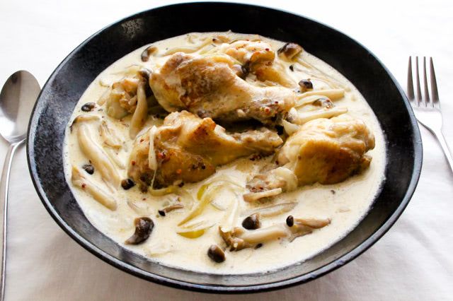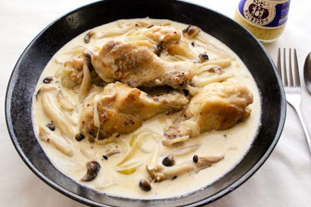 じっくりと煮込むだけ♪「鶏手羽元とキノコのマスタードクリーム煮」にトライ!