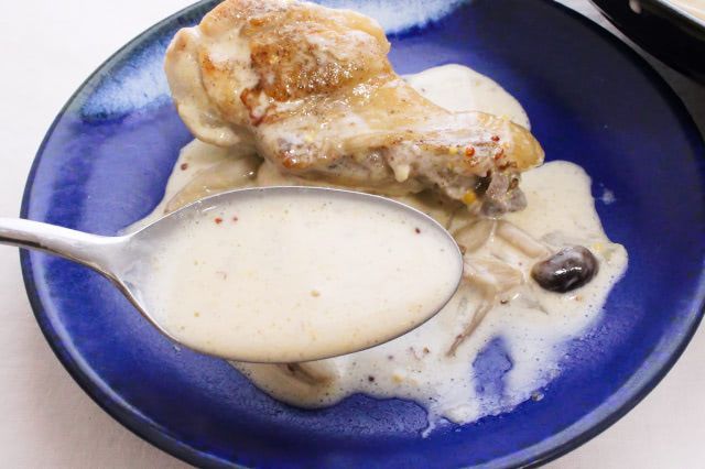 マスタードの酸味でクリーム煮が軽やか♪ 骨付き肉から旨味たっぷり