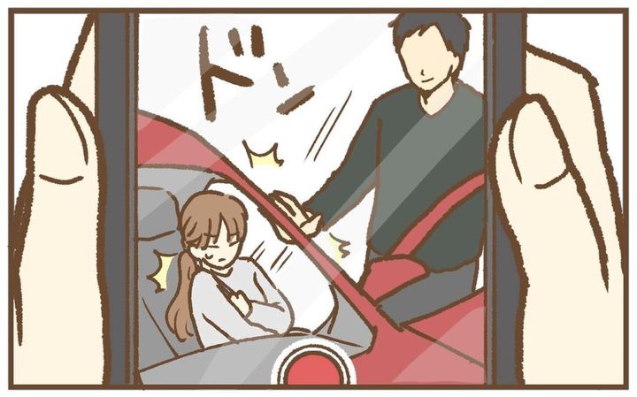 GPSを辿って夫を尾行していたKくんのママ。