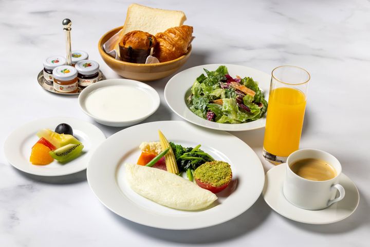 *ホワイトオムレツなど美容とウェルネスを意識したメニューのセット「ヘルシーブレックファスト」、または、約50種類以上のメニューがそろう「ブレックファスト ビュッフェ」から選べます。