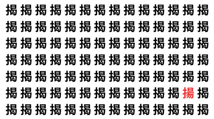 たくさんの「揭」の中に、よく似た別の漢字が1文字だけ隠れています。