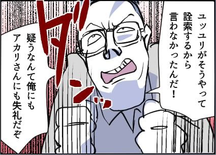 しかしアカリの夫は「積もる話もありますし」と強引にクズ雄を座らせる。
