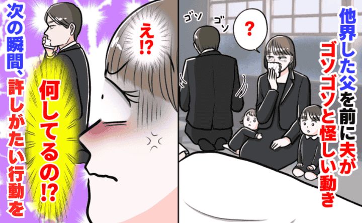 他界した父を横目に夫がソワソワ「何してるの?……は??」あまりに身勝手な行動にゲンナリ!
