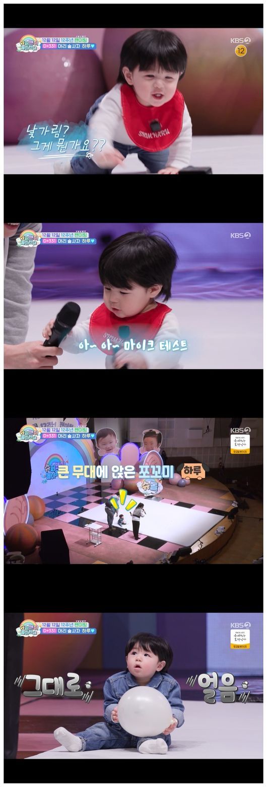 最初にステージに座り、少し戸惑った様子で客席を見渡していたハルちゃん。やがて父親とMCパク・スルギの愛嬌あふれる仕草に反応し、にっこりと笑顔を浮かべた。観客に向かって笑いかけながら、喃語を発する姿も見せた。