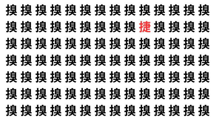 たくさんの「搝」の中に、よく似た別の漢字が1文字だけ隠れています。