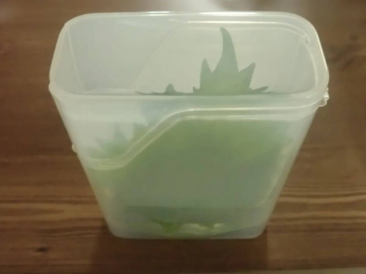 ケースの側面にある線を目安に水を注いだら、大葉を入れ、冷蔵庫内に立てて保管しましょう。