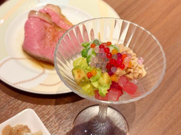 私は、迷ったあげく、目の前で焼いてくれるライブ感に惹かれ、和牛をチョイス。ステーキよりも薄めのお肉で、食べやすくて、脂が甘くておいしかった~!
