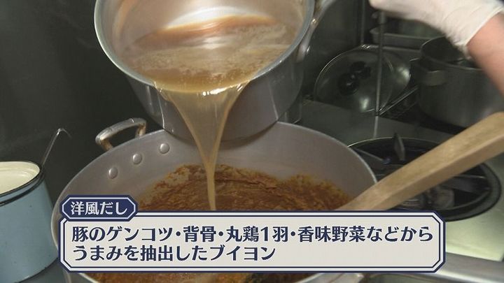 豚のゲンコツと丸鶏、香味野菜を8時間煮込んだコク深い「洋風ブイヨン」に…