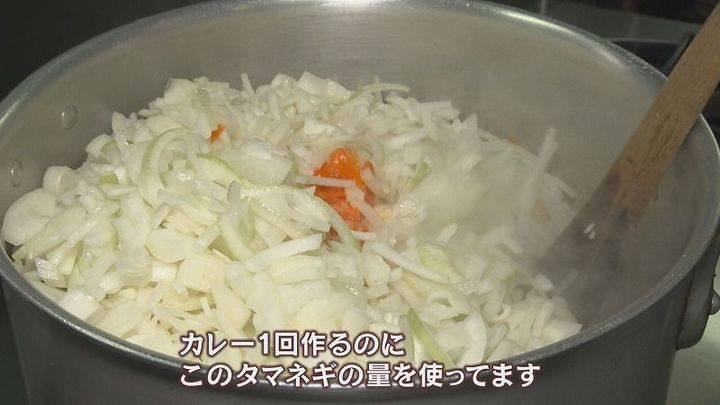 常孝さん:「カレー1回を作るときにこの玉ねぎの量を使っています。鍋に弱火でかけておいて4~5時間くらいですね」
