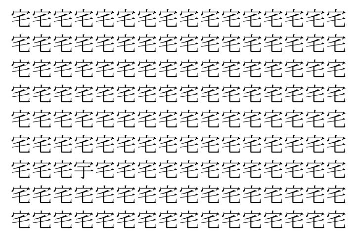 2. 【脳トレ】「宅」の中に紛れて1つ違う文字がある!?あなたは何秒で探し出せるかな??【違う文字を探せ!】