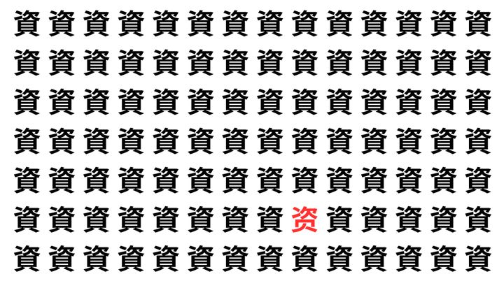たくさんの「資」の中に、よく似た別の漢字が1文字だけ隠れています。