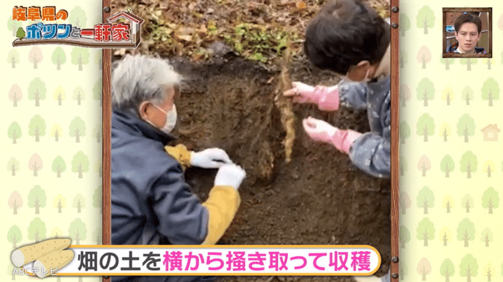 山をとことん楽しんでいるご主人は、農業にも稼業の経験を活かしていた。一般的にはパイプを使い横に栽培する自然薯(じねんじょ)を自然に近い縦に伸ばせるようにと、4tトラックの荷台を再利用して土を盛った。そうすることで粘り気が強く風味豊かな自然薯が育つという。掘り出すときには仕事で使う重機で荷台を持ち上げる。こんな栽培ができるのも、林業を手がけるご主人ならでは。なんと毎年550本を栽培。販売目的ではなく、社員やお世話になった人たち100人に配るという。