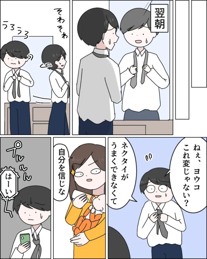3. 何年社会人やってるの!?ネクタイが結べず、義母の遠隔指導に頼る夫に失笑【無自覚マザコン夫】
