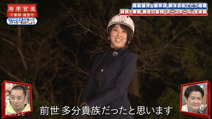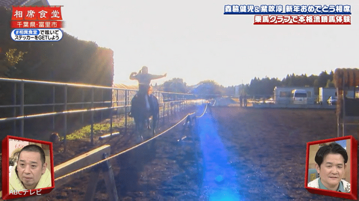なお、紫吹の衝撃VTRは、『相席食堂』1月6日放送回で公開された。ちなみに、スタッフたちに馬場から掘り起こされた紫吹は、いきなり矢を的に当てることに成功。さらには、乗⾺と球技を掛け合わせた競技『ホースボール』にも果敢に挑戦し、日本代表選手から「センスしか感じない」「えぐい上手」「ドン引きするぐらい良い」などと褒められた。