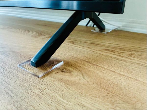設置後、テレビを揺すってみると何もしていない時よりガタつきが減り、テレビの脚が滑らずに引っかかるようになりました。とはいえ、まだ少し不安定で心配です。