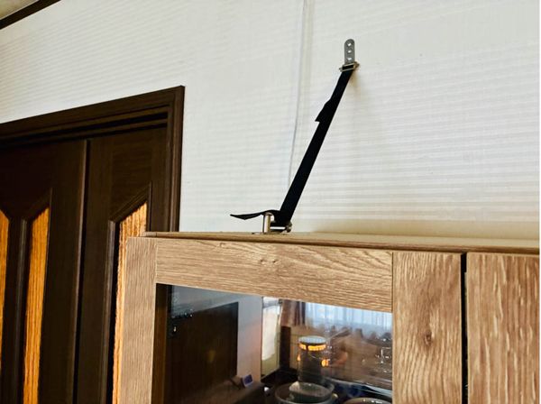 わが家の場合、スペースの関係上キッチンではなくリビングに食器棚が置いてあります。購入時についてきた転倒防止ベルトで上部を固定してありますが、食器棚は重いため不安が残ります。それに東日本大震災の時、筆者は震度5強を観測した地域に住んでいましたが、帰宅していちばん大変だったのは停電して暗い中、落ちて割れてしまったグラスやお皿を片づけることでした。