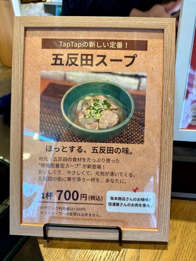 五反田スープは、その名の通り地元の食材を使った地域密着型のメニュー。 五反田にある坂本商店の味噌と、信濃屋のお肉を使用しているそうです。