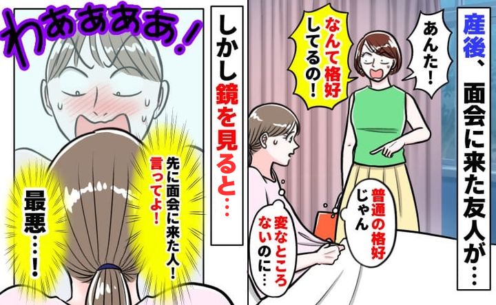 「その格好、大丈夫?」産後の面会で友人から指摘→鏡を見て思わず赤面した理由とは?