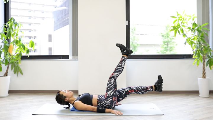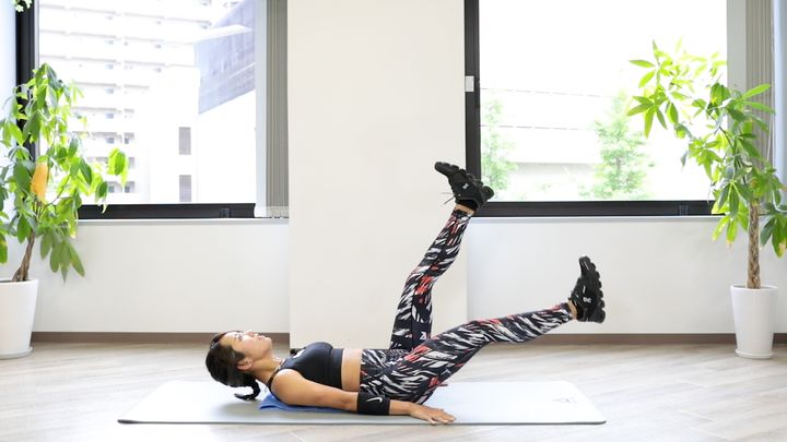 1.仰向けになり、お尻から背中まで、しっかり床につける