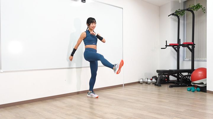 その場で片足ずつキックをします。膝の高さを目安に蹴っていきましょう。