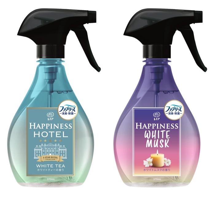 左/ハピネスミスト ホワイトティーの香り 〈370ml〉オープン価格 右/ハピネスミスト ホワイトムスクの香り 〈370ml〉オープン価格