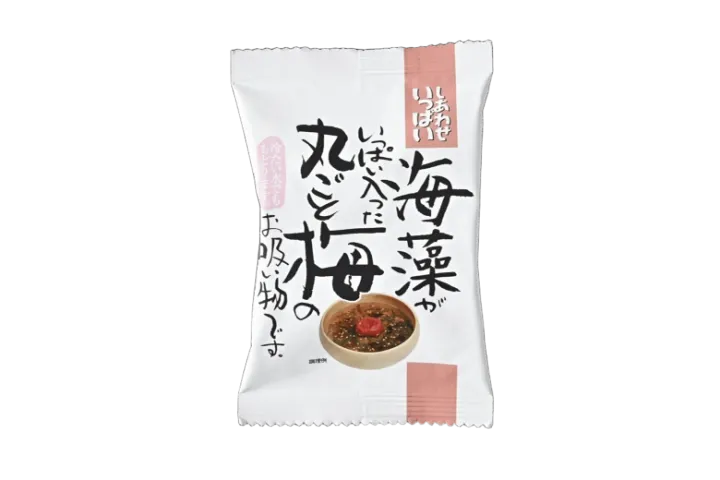 しあわせいっぱい 海藻がいっぱい入った丸ごと梅のお吸い物 167円/めかぶや昆布などの5種類の海藻と紀州南高梅の異なる食感がマッチ。梅の酸味でさっぱり食べられます。