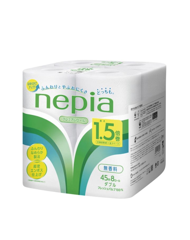 ネピア トイレットロールはふんわり製法と独自のエンボス加工によって、肌ざわりと破れにくさを両立。シャワートイレやトイレ掃除などにも使用しやすいですよ。