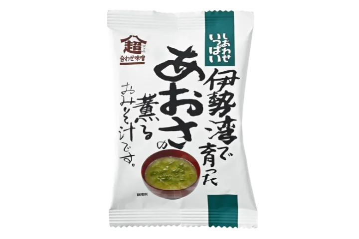 しあわせいっぱい 伊勢湾で育ったあおさの薫るおみそ汁 151円/食べた瞬間、口いっぱいに磯の香りが広がります。