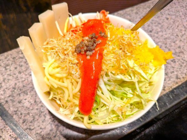 完成です。トロトロですね~。熱々です。フーフーしながらいただきました。もんじゃ焼きの種類は無限大で、組み合わせる食材で色々な味に仕上がるそうです。
