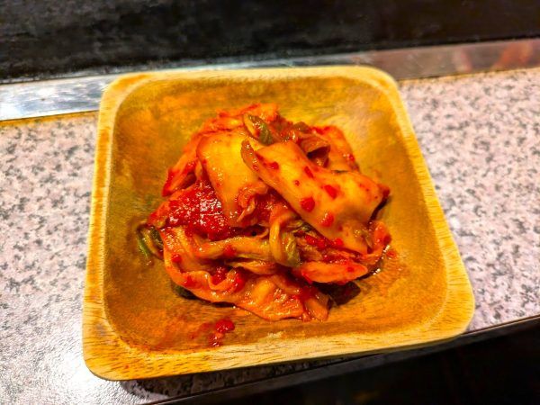 本格白菜キムチ 480円 お疲れの一杯とアテのキムチをいただきます。もんじゃ焼きだけかと思ったら、焼肉、お好み焼き、焼きそば、ネギ焼きと鉄板で焼ける系のメニューがいただけます。焼き肉に粉もんの鉄板焼き!鉄板が分厚い!なんてしっかりとした厚みのある鉄板なんでしょう。