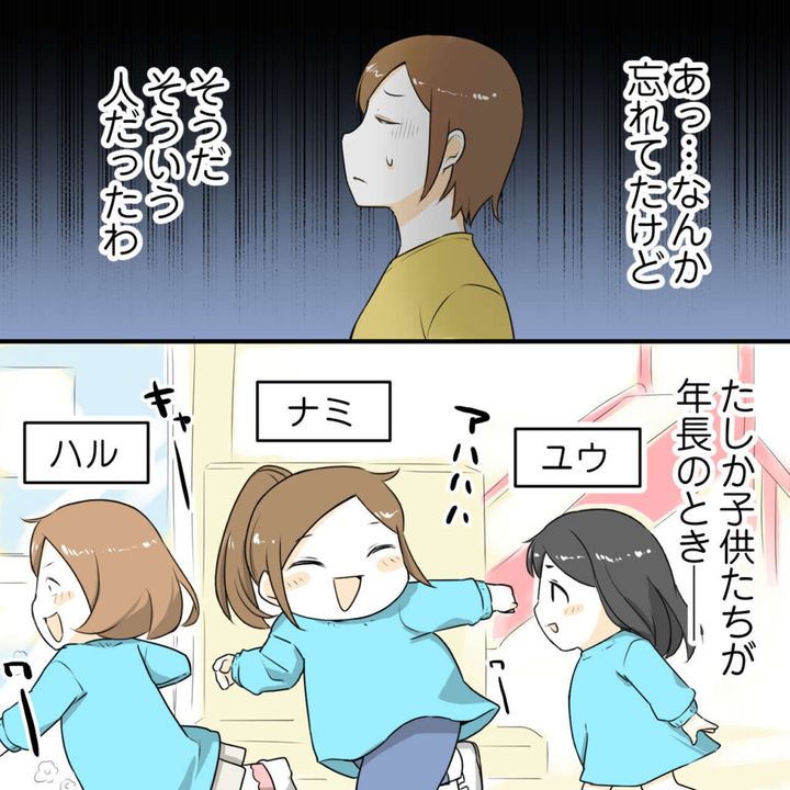あっ・・なんか、忘れてたけど・・そうだ。そういう人だったわ。ハルちゃんママが帰った後、ナミが保育園に通っていた頃の記憶が少しよみがえってきました。あれはたしか、子ども達が年長のときで、ナミとハルちゃんとユウちゃんが3人で遊んでいたときのことです。
