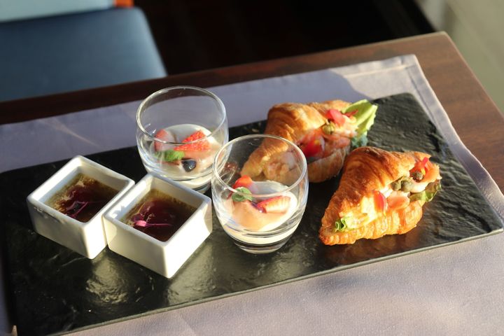 また、サーモンと海老を贅沢に楽しめる「サーモンと海老のクロワッサンサンド」や、ミルキーでコクのあるモッツァレラチーズにいちごを組み合わせた「苺とモッツァレラチーズのムース」も華やかにテーブルを彩ります。