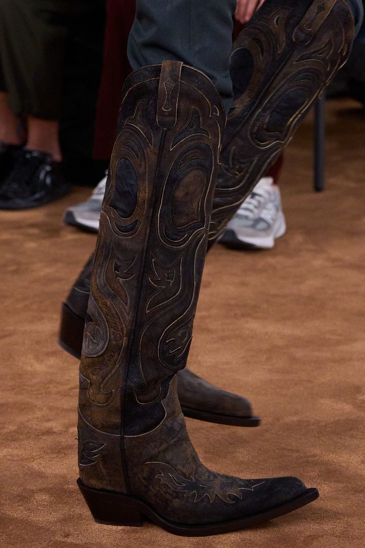 近年のウエスタン風スタイルの人気はとどまることを知らず、2026年春夏コレクションでも「バーバリー」や「ジマーマン」、「メゾン マルジェラ」、「マックイーン」、「ミュウミュウ」、「アクネ ストゥディオズ」など、数えきれないほどのランウェイでウエスタン調のシューズがお目見えした。