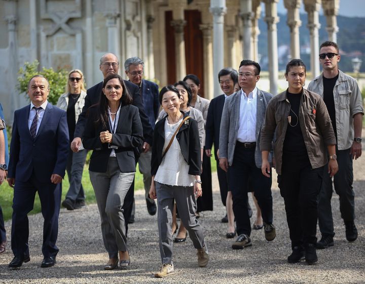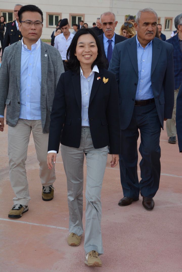 トルコ、クルシェヒルにある考古学博物館や日本庭園などを訪れた彬子さま。コンパクトな紺ジャケットとストライプ柄のシャツで、カジュアルなパンツコーデをクリーンな表情で着こなしていました。