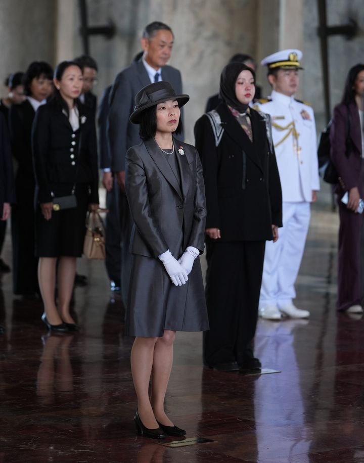 8回目となるトルコ訪問で、初代大統領ムスタファ・ケマル・アタテュルクの霊廟“アニトカビル”を訪れた彬子さま。この日は、光沢のある濃いグレーのツーピースに同色のハットの装いで。トルコと日本の国旗をあしらったネイルを施されていたことでも話題になりました。