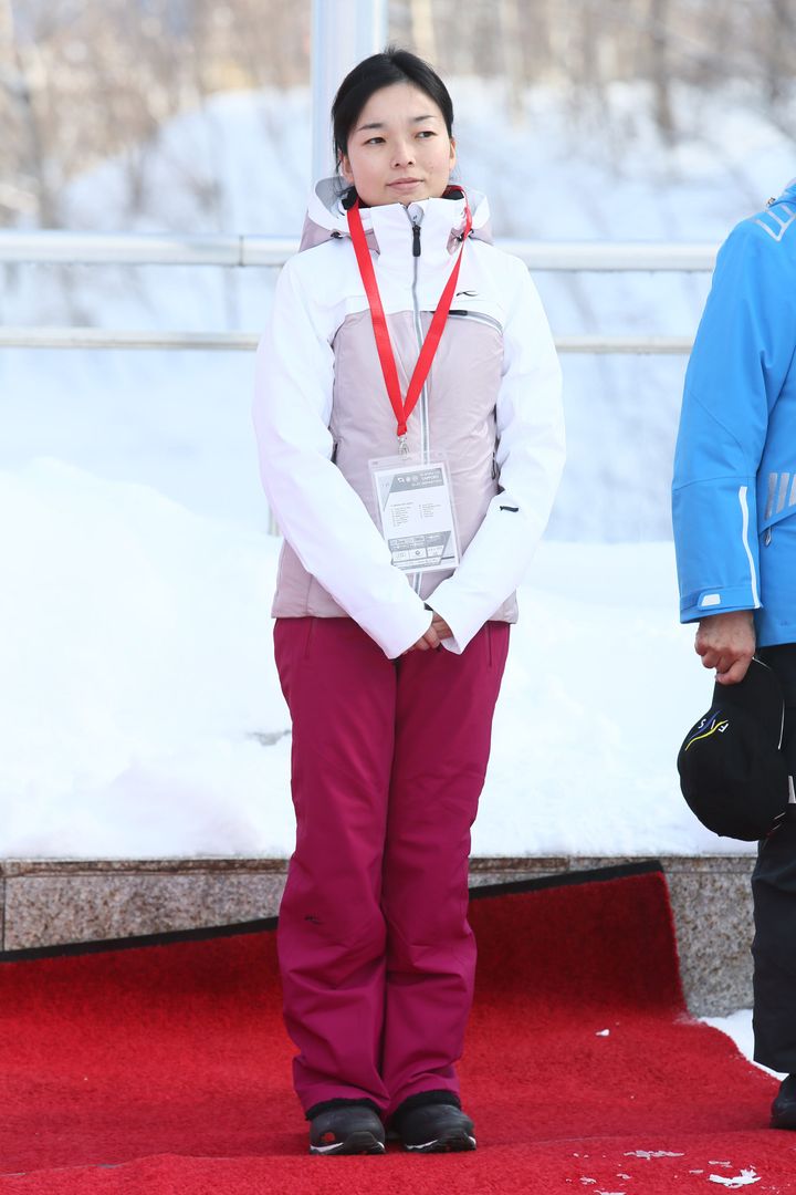 札幌の大倉山ジャンプ競技場で行われた、FISスキージャンプワールドカップ男子の表彰式に出席。ピンク×白のジャケットに赤いパンツを合わせた、シンプルかつ華やかなスキーウエアスタイルがお似合いです。