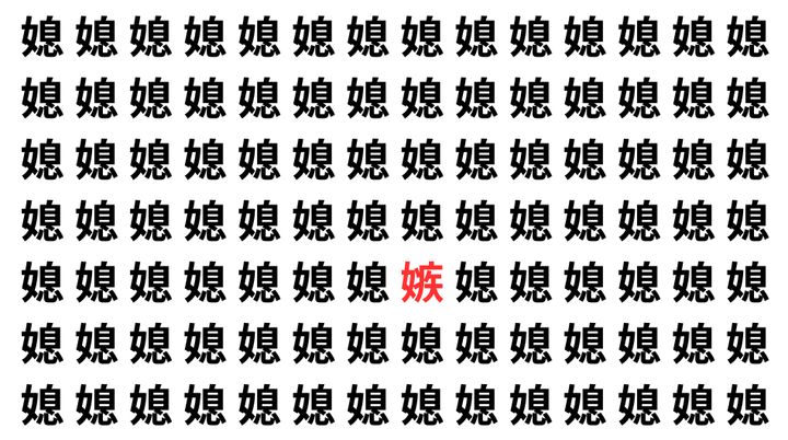 たくさんの「媳」の中に、よく似た別の漢字が1文字だけ隠れています。